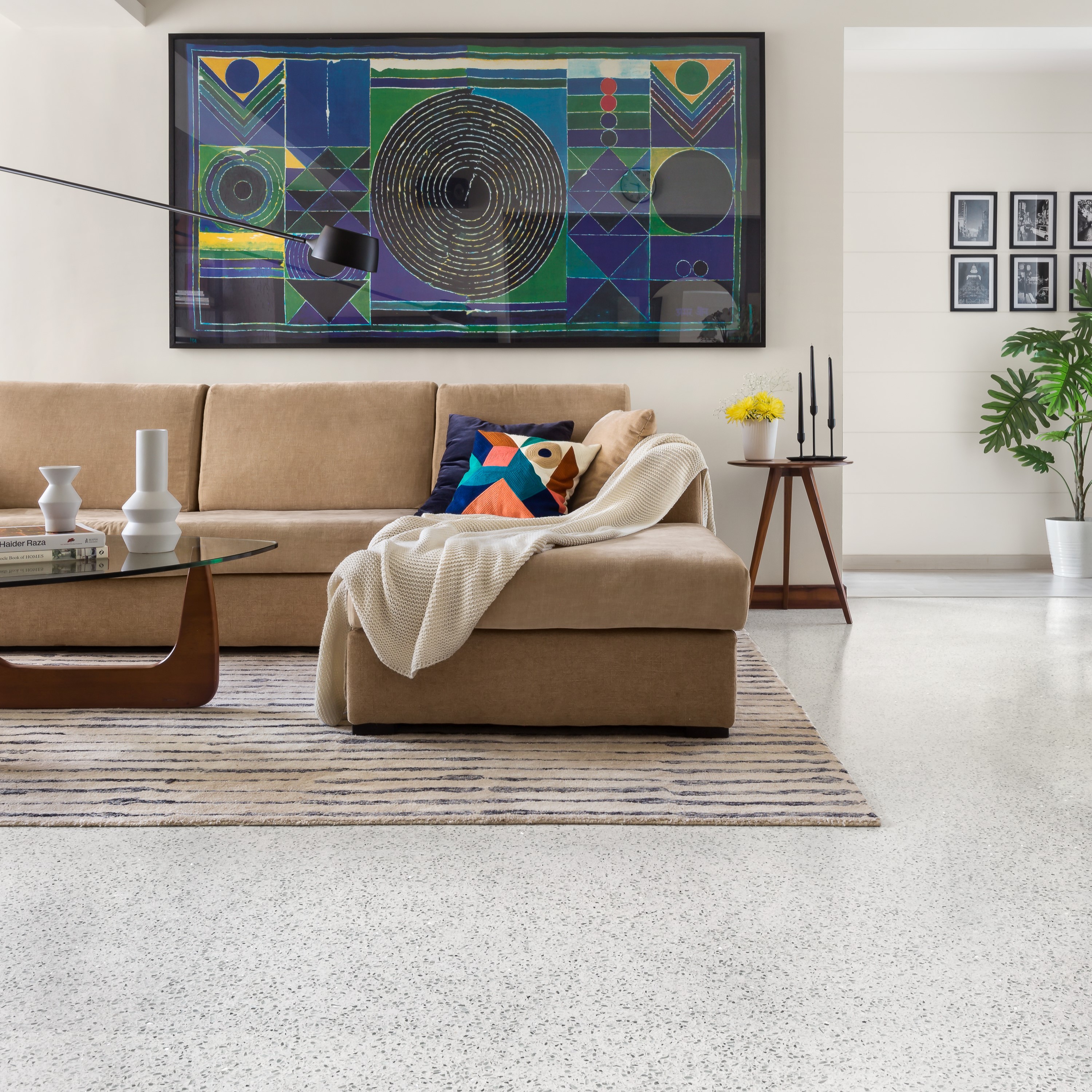 A flat in Mumbai with Epoxy Terrazzo Flooring. Photography - Studio Kunal Bhatia