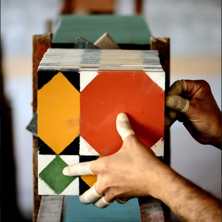 The colours are filled with hand into a metal mold. The metal mold, containing the desired pattern is handmade from specific design drawings. Handmade cement tiles are unique and are expected to have slight imperfections, which give them character and depth.